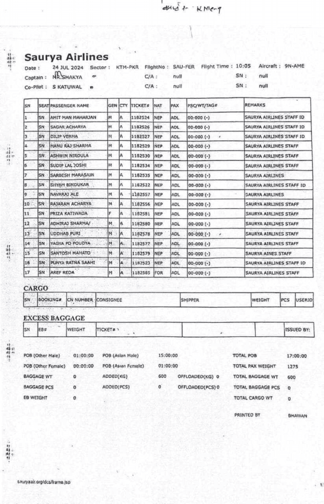 काठमाडौं । काठमाडौंको त्रिभुवन अन्तर्राष्ट्रिय विमानस्थलमा दुर्घटनामा परेको सौर्य एयरलाइन्सको जहाजमा सवार १९ जना एयरलाइन्सकै कर्मचारी रहेको खुलेको छ ।